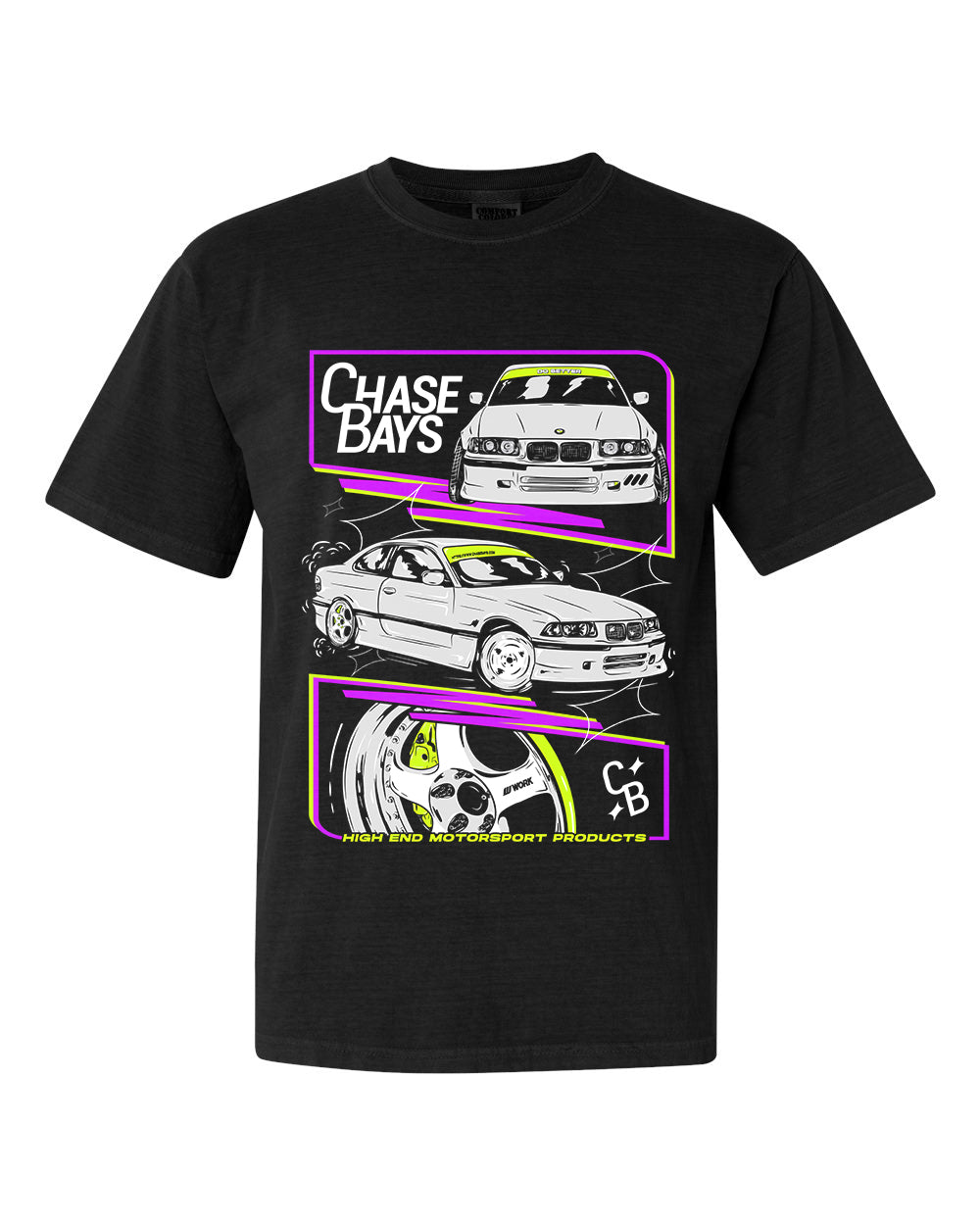 Based on our BMW E36 w/ 2JZ-GTE w/ Work Meister S1's! You've seen Chase thrashing this thing for years and let's be honest it's rare you see a clean example of an E36 so let's throw a good example of one on a HIGH quality shirt and wear it around your haggard E36 friends.