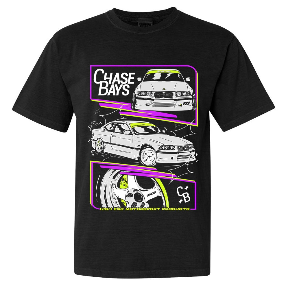 Based on our BMW E36 w/ 2JZ-GTE w/ Work Meister S1's! You've seen Chase thrashing this thing for years and let's be honest it's rare you see a clean example of an E36 so let's throw a good example of one on a HIGH quality shirt and wear it around your haggard E36 friends.